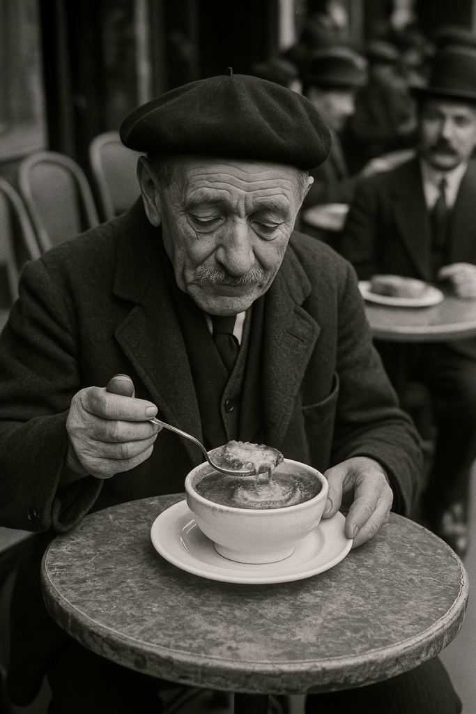 La versión más conocida hoy en día, con queso gratinado y pan tostado, se popularizó en París durante el siglo XIX, cuando la receta fue perfeccionada y refinada por los chefs franceses. La inclusión del queso Gruyère derretido y la capa de pan tostado gratinado en la parte superior transformaron la sopa de cebolla en un plato mucho más sabroso y reconfortante, que empezó a ser servido en bistrós y brasseries parisinas.